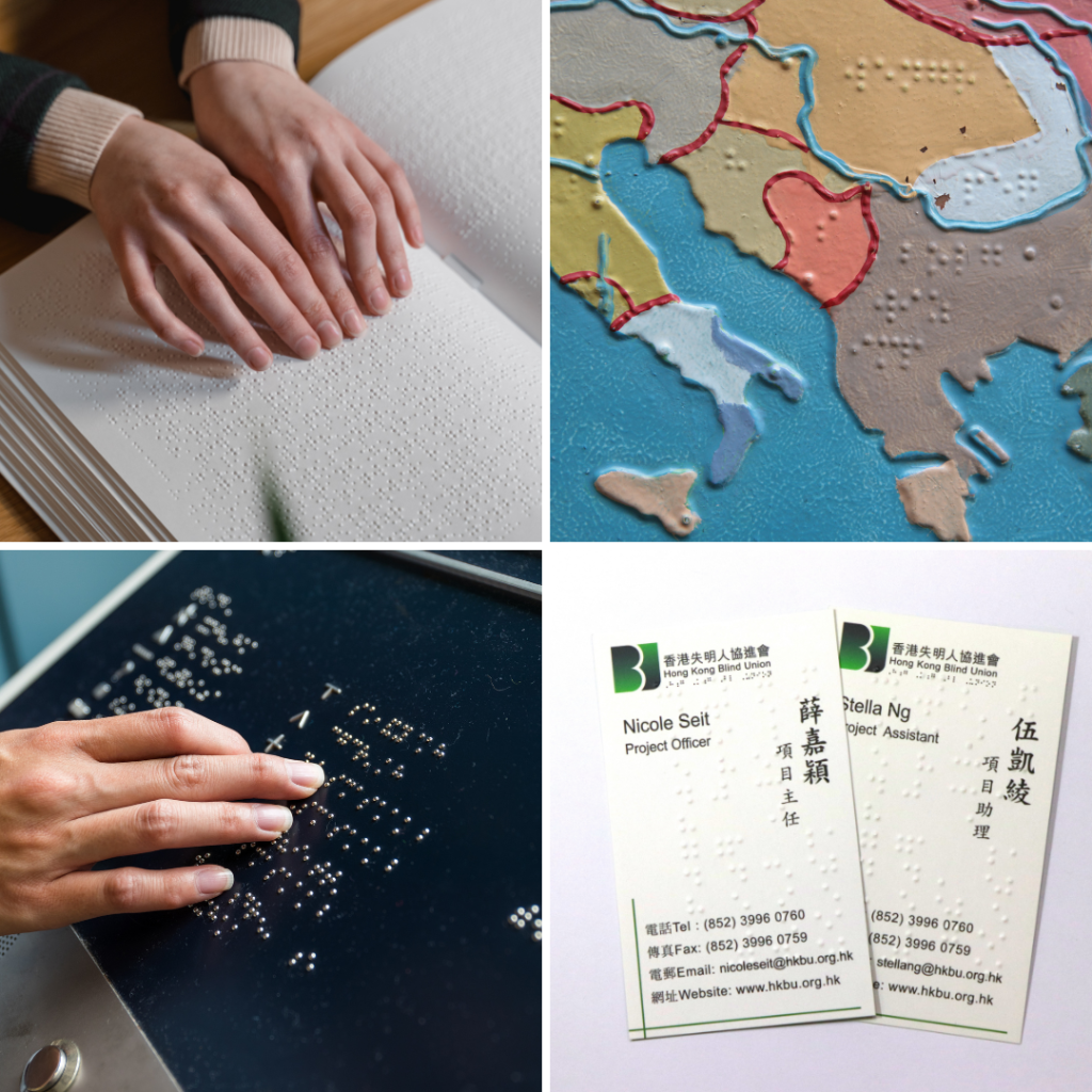 我們提供點字轉譯服務,可將印刷資料、文件檔和文字內容轉換為點字,或將點字內容轉換為一般文字。同時提供加印點字服務,可以在個人名片上加上點字姓名、電話號碼及其他聯絡資料,或在客戶的產品上貼上點字貼紙,確保視障人士能夠獲得相同的資訊,並提升其產品和服務的無障礙性。